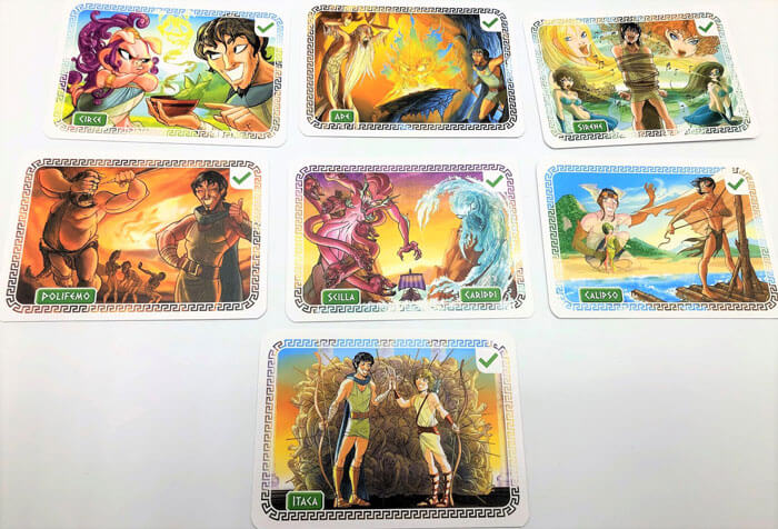 Il gioco termina non appena il numero di imprese fallite arriva a tre con la vittoria delle divinità nemiche o quando il numero di quelle superate arriva a 5 con la vittoria delle divinità favorevoli ad Ulisse.