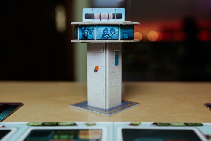 La torre di controllo come segnalino primo giocatore è un’ottima idea, bellissima da vedere… se non si smontasse al primo tocco. Oltretutto avrei preferito anche che ci fosse inserito nella scatola un foglietto illustrativo su come montarla dato che, ahimè, si deve andare ad intuito.
