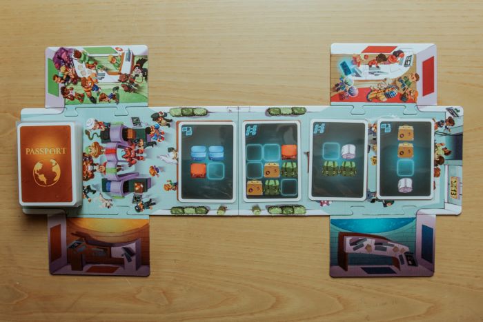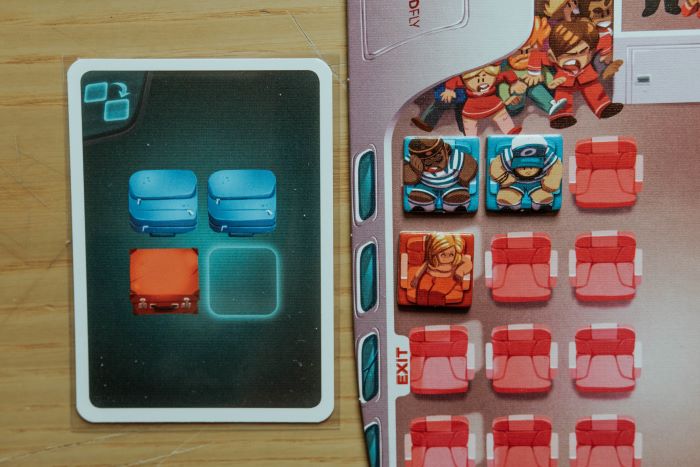 Si scoprono le prime 4 carte del mazzo passeggeri e si mettono in ordine verso il gate. La prima carta è gratuita le altre avranno un costo in buoni pasto, uno per ogni carta saltata e andranno posizionati su di esse.