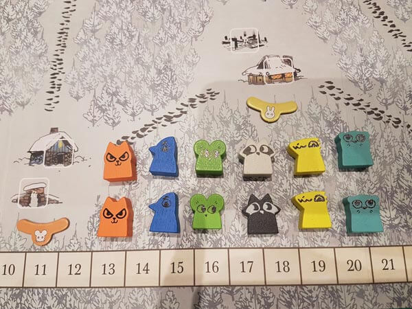 Il tabellone di gioco è ancora più spesso, robusto e di ottima fattura, è stampato su 2 lati con una versione autunnale per la modalità standard con i simboli radura, e un lato invernale dall’altra, sul quale dovremmo collocare appositi token con i simboli per ogni radura (a mio parere di scarsa utilità se non sul piano estetico).