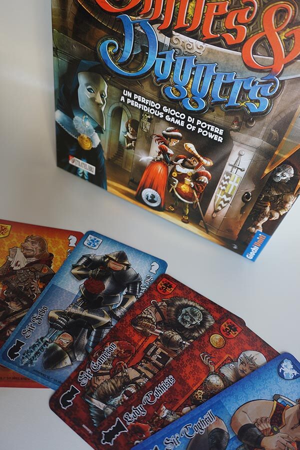 Gianluigi Giorgetti e Andrea Marchi, con Giochi Uniti, firmano Smiles & Daggers un semplice, ma divertente, gioco per 3-6 giocatori con una durata di partita dichiarata di 20 minuti.