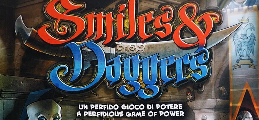 Gianluigi Giorgetti e Andrea Marchi, con Giochi Uniti, firmano Smiles & Daggers un semplice, ma divertente, gioco per 3-6 giocatori con una durata di partita dichiarata di 20 minuti.
