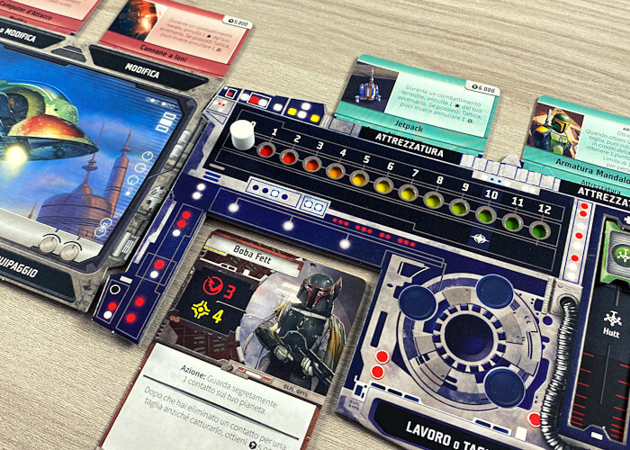 In questo gioco, di Corey Koniecza e Tony Fanchi per Fantasy Flight Games, localizzato in Italia da Asmodee, interpreterete alcuni personaggi leggendari dell’universo di Star Wars non di certo famosi per rettitudine ed onestà, e lotterete senza esclusione di colpi per ottenere fama a discapito dei vostri avversari