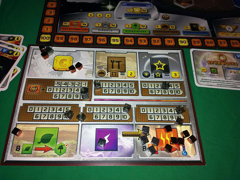 In partite con più giocatori anche se ci aiuterà ad alzare il tasso di terraformazione (TT) non saremo obbligati a portare a termine il parametro di Venere, nella variante in solitario invece dovremo farlo entro il quattordicesimo turno (in aggiunta agli altri tre).