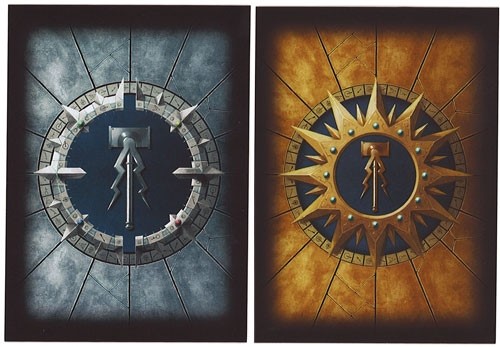 Ultimo ma non meno importante, il giocatore necessita del mazzo di carte della fazione scelta, diviso a sua volta in carte obiettivo dal dorso dorato e carte potere dal dorso blu.