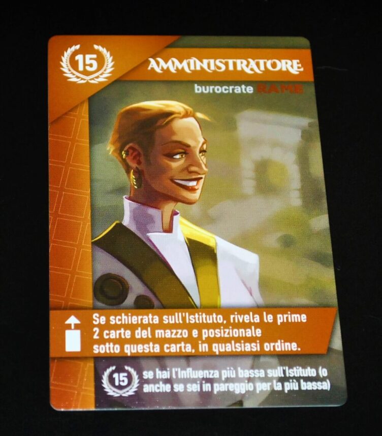 Infine, in alto a destra, troveremo l’Istituto dove i giocatori posizioneranno i loro cubi influenza per avere la maggioranza.