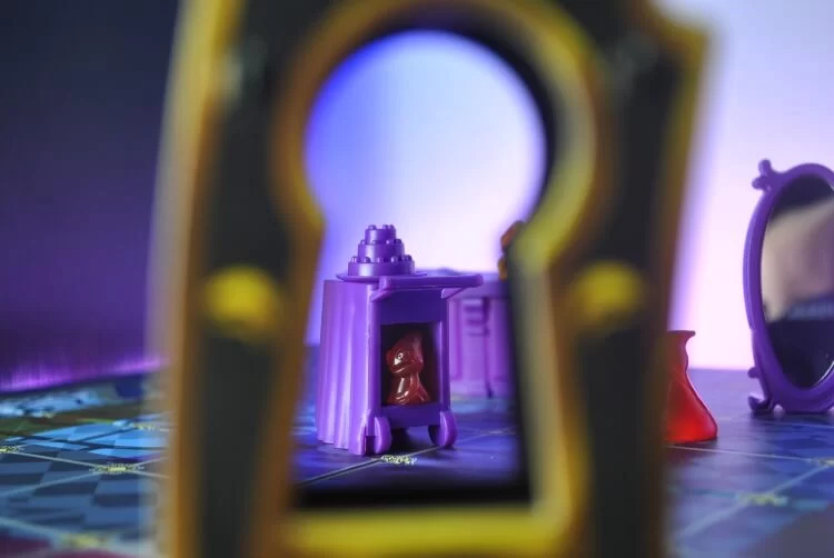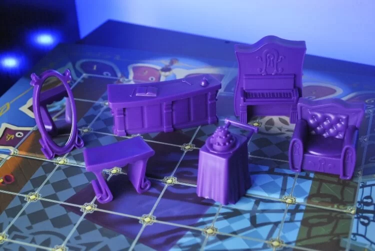 La prima cosa che salta all’occhio sono sicuramente i componenti. I fantasmi colorati semitrasparenti, i mobili in 3D con tanto di specchio riflettente e il buco della serratura caratteristico del gioco… Se lo vedi apparecchiato, sicuramente la tua attenzione verrà catturata.