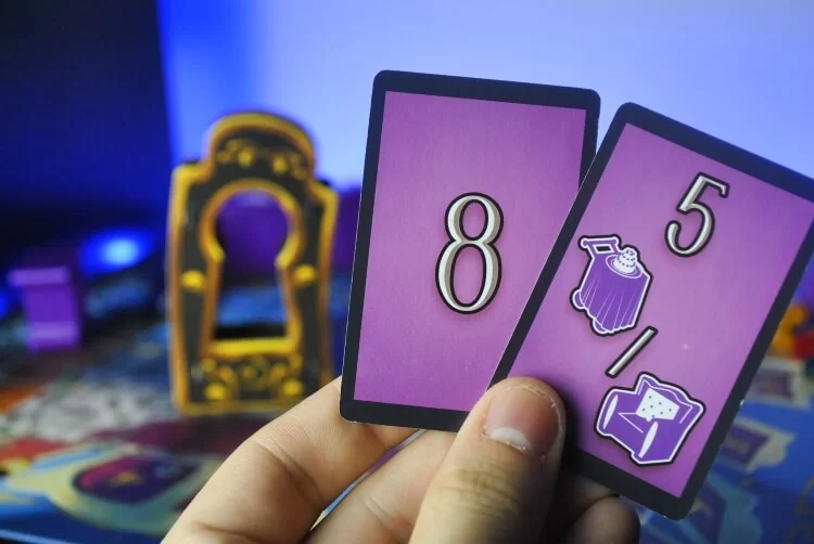 Partendo da colui che ha il dado davanti a sé, ogni giocatore pescherà una carta Movimento dal relativo mazzo. Le carte movimento possono avere solo un numero o anche una scelta tra due mobili della Hall dell’albergo.