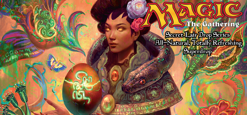 Dal 21 giugno 2021, negli store online della Wizards of the Coast è possibile acquistare il nuovo Secret Lair Drop Series: All-Natural, Totally Refreshing Superdrop. Questo nuovo box artistico di Magic the Gathering è composto da ben otto mimi-set dalle diverse tematiche. Vediamoli nel dettaglio: