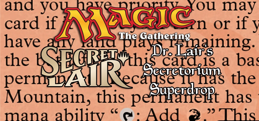 Negli store della Wizards of the Coast, dal 26 aprile fino al 28 maggio 2021, sono reperibili i nuovi Secret Lair. Sotto il nome di Secret Lair Drop Series: Dr. Lair’s Secretorium Superdrop, questo bundle è composto da sette mini-set con tematiche specifiche. I mini-set sono i seguenti: