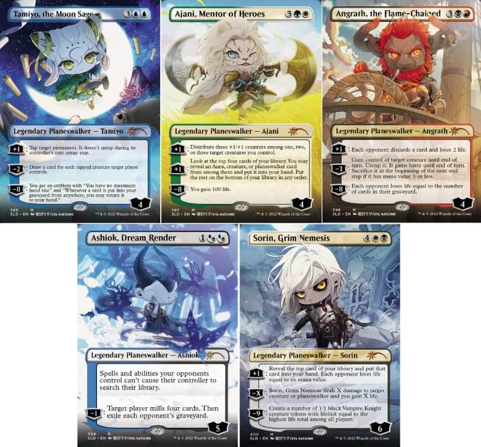 Questo mini-set contiene cinque palneswalker disegnati in versione chibi dall’artista Uta Natsume. Vediamo: