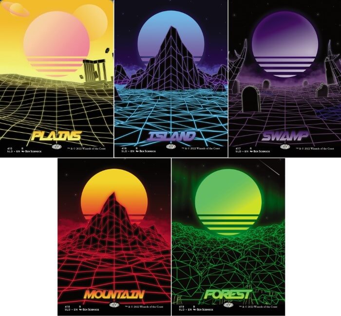 Questo mini-set mostra le cinque terre base in versione stile grafica degli anni 80. Le illustrazioni, decisamente ben realizzate, sono a cura di Ben Schnuck. Il prezzo del mini-set è di 29,99$ in versione classica e 39,99$ in versione foil. Per quanto siano ben fatte, non vale davvero la spesa… Acquistatele solo se siete amanti del “pimp my deck” o se siete collezionisti.