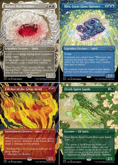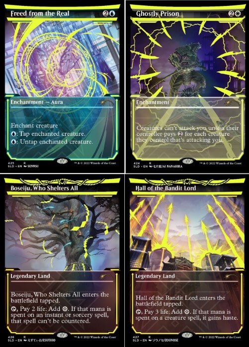 Questo mini-set è composto da quattro carte provenienti dal Blocco di Kamigawa realizzate in versione foil fluorescente. Vediamo: