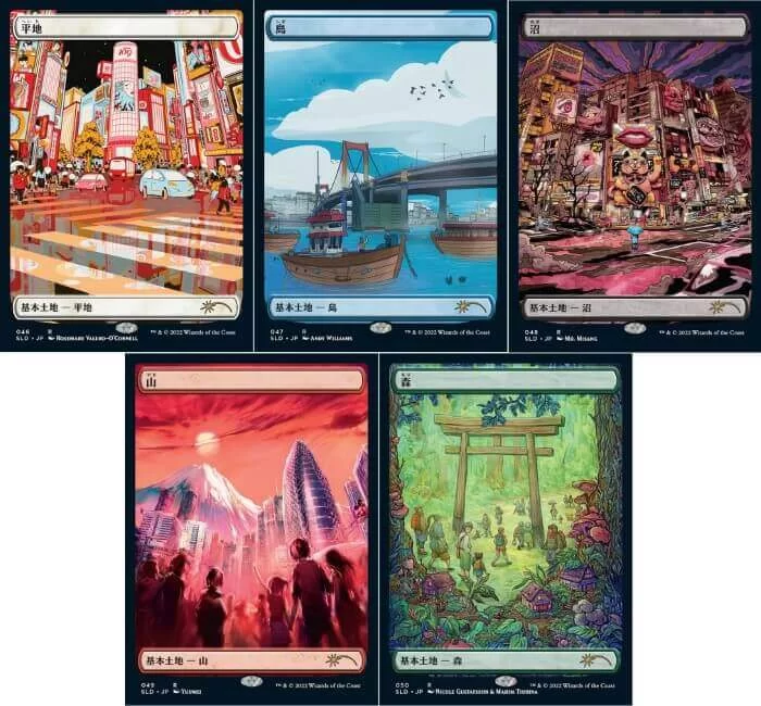 Questo mini-set è composto dalle cinque terre base in versione full-art dove sono raffigurate tipiche località di Tokyo, inoltre sono trascritte in lingua giapponese. Sono veramente belle e ben realizzate, tuttavia consiglio l’acquisto ai collezionisti a tutti gli amanti del “pimp my deck”… Recuperare un numero elevato di queste terre è sempre esoso. Il prezzo del mini-set è di 29,99$ in versione classica e di 39,99$ in versione foil, forse un po’ altro per sole cinque terre…