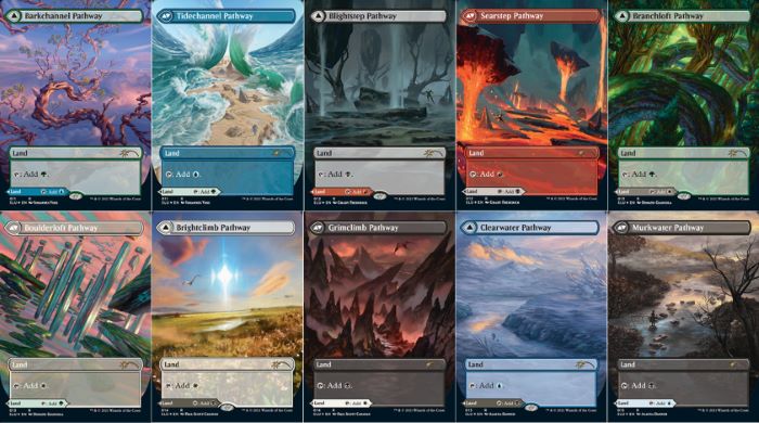 Il prossimo 7 maggio 2021, data posticipata a causa della pandemia mondiale, la Wizards of the Coast rilascerà Secret Lair: Ultimate Edition 2. Per chi non lo ricordasse, si tratta di un particolare Secret Lair che contiene carte dall’alto valore economico e collezionistico, autentiche primizie del competitivo. Lo scorso anno era dedicato alle Fetch Land del Blocco Zendikar, tutti si aspettavano un nuovo mini-set con le controparti originali del Blocco Assalto… Invece, la Wizards decide di omaggiare le recenti Pathways (le terre bifronte modali) apparse in Rinascita di Zendikar e Kaldheim. Le terre in questione sono le seguenti: Cammino del Canale di Corteccia // Cammino del Canale di Maree (illustrata sul piano di Zendikar), Cammino dei Passi Mefitici // Cammino dei Passi Brucianti (illustrata sul piano di Zendikar), Cammino del Tunnel Oscuro // Cammino del Tunnel Serpeggiante (illustrata sul piano di Zendikar), Cammino dei Cancelli Monolitici // Cammino dei Cancelli di Foschia (illustrata sul piano di Zendikar), Cammino dei Rami Sospesi // Cammino dei Massi Sospesi (Illustrazione di Kaldheim), Cammino dell’Ascesa Luminosa // Cammino dell’Ascesa Cupa (Illustrazione di Kaldheim), Cammino delle Acque Limpide // Cammino delle Acque Melmose (Illustrazione di Kaldheim), Cammino della Corona di Rupi // Cammino della Corona di Legno (Illustrazione di Kaldheim), Cammino dell’Orlo dei Picchi // Cammino dell’Orlo dei Pilastri (Illustrazione di Kaldheim) e Cammino della Planata Fluviale // Cammino della Planata Lavica (Illustrazione di Kaldheim).