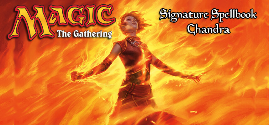 Il prossimo 26 giugno 2020 la Wizards of the Coast rilascerà il box set Signature Spellbook: Chandra. Per chi non lo ricordasse, i Signature Speelbook Set sono dei prodotti annuali dedicati a planeswalker o personaggi leggendari del mondo di Magic the Gathering. Ogni set è composto da otto ristampe contrassegnate come rare o rare mitiche, sono concepite per esser concretamente giocate in competitivo. Inoltre, è presente una nona carta (sempre appartenente al box set) casuale in versione foil. Le carte possiedono una nuova grafica esclusiva e, nella maggior parte dei casi, una nuova illustrazione.