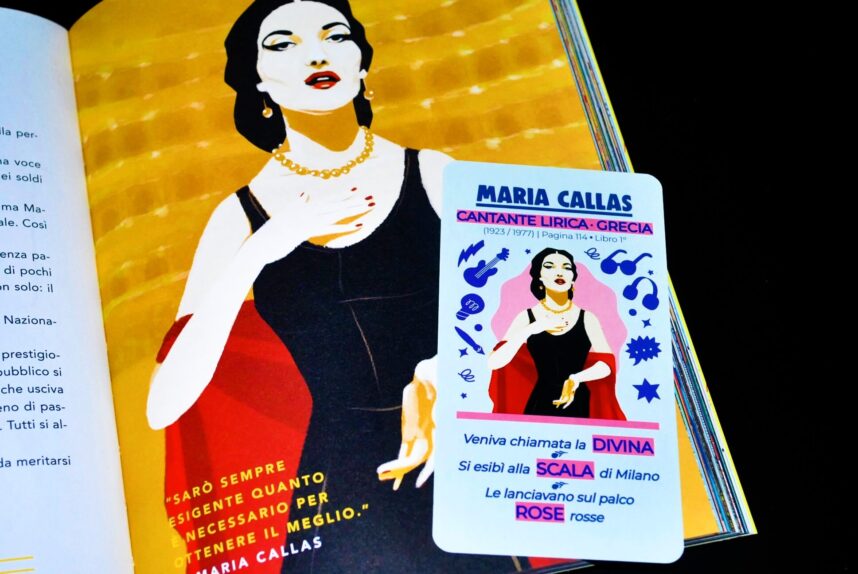 Ogni carta mostra l’immagine del personaggio, il suo nome e cognome, l’occupazione e il paese d’origine, l’anno di nascita e di morte e per finire del breve testo con 3 parole chiave evidenziate,