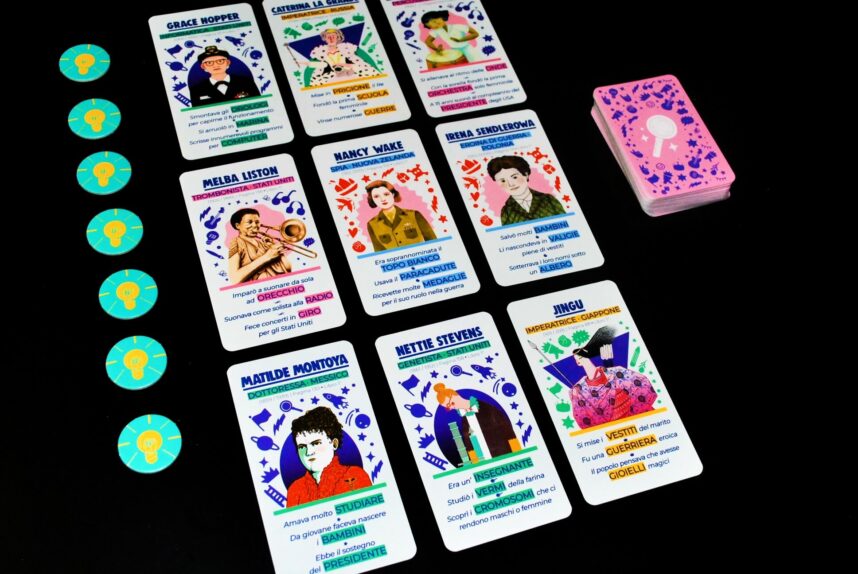 Ogni carta ha uno sfondo colorato che può aiutare durante il gioco, oltre a mettere in risalto il campo dove si è distinta il personaggio.