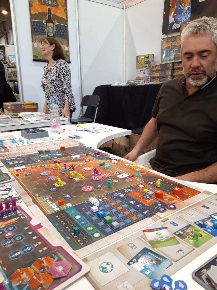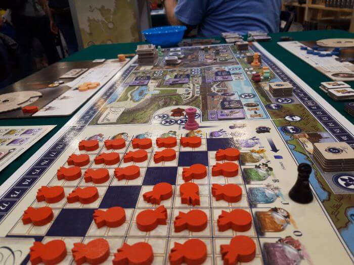 Terramara, un bel euro-game, non propriamente leggero, ma la spiegazione è veloce e corretta, niente intoppi, personale preparato. L’inizio promette bene, e il gioco pure. Un piazzamento lavoratori abbastanza stretto, nel quale durante i 5 turni a disposizione bisogna ottimizzare i tracciati militare, viaggi e navigazione (per poter utilizzare azioni più forti ed avere accesso a più carte tra cui scegliere), gestire le risorse accumulate durante le nostre azioni acquistando carte che ci forniscono punti e bonus temporanei o permanenti, e nel frattempo stare attenti agli avversari che con un colpo di mano ci possono rubare le risorse se non siamo pronti militarmente. Ho giocato solo 2 turni, tanto per avere un’idea di massima delle meccaniche e della gestione e devo dire che mi è piaciuto. Un titolo tutto italiano che non ha nulla da invidiare ai concorrenti. (7.5/10)