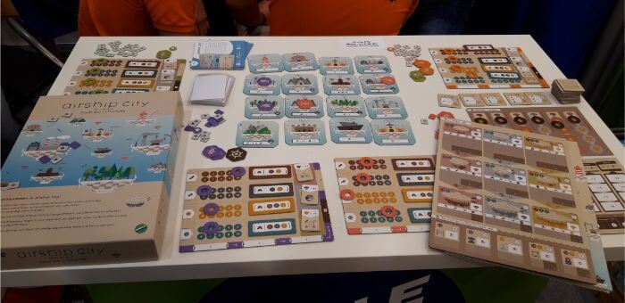 Airship City: Ancora un gestionale. Parliamo di un gioco del 2018, ripubblicato quest’anno dalla Spielfaible (oltre che dalla Analog Lunchbox). Grafica minimalista, ma essendo di origine asiatica, non poteva essere altrimenti. Scopo del gioco è costruire le nostre città tra le nuvole, tramite una serie di azioni che ci faranno gestire varie risorse. Una particolarità è il fatto che gli spazi azione possono variare di posizione durante il turno di un giocatore tramite una azione specifica, e spostandosi di uno spazio per volta, potrebbe creare delle problematiche. Altre azioni sono rappresentate dalla raccolta di risorse (legno, metallo, oro e parti meccaniche), prendere contratti, costruire città o edifici pubblici, spendendo le risorse raccolte nei turni precedenti, e guadagnando punti vittoria. Le città costruite forniscono vantaggi per i giocatori, potenziando le azioni e offrendo azioni bonus. Meccanica semplice e lineare. Non saprei dire di più, in quanto non è stato giocato, ma solo spiegato in modo esaustivo. Potrebbe rimanere un sogno nel cassetto o anche no… Il prezzo al pubblico l’unico ostacolo (6.5/10).