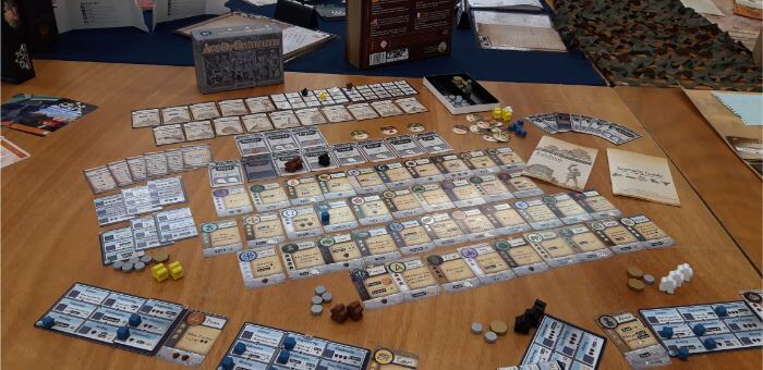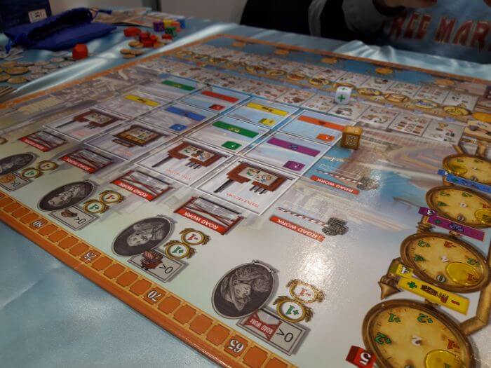 Personalmente mi è sembrato un pot-pourri di concetti messi li alla meno peggio. Ripetitivo e freddo, non ho avuto una sensazione di flusso pulito di gioco… in pratica compri, vendi e ogni tanto costruisci. Il gioco ha durata 5/6 turni a seconda del livello di difficoltà e si parla di 4 ore di gioco. Non mi sembra credibile. Mi dispiace, ma è rimandato a settembre. (5.5/10)