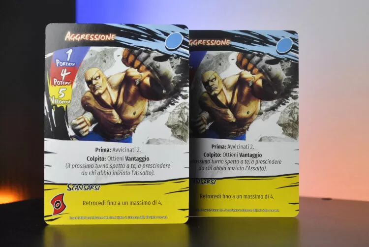 Le carte potranno essere giocate o per il loro attacco o per il loro potere Boost (parte colorata di giallo).