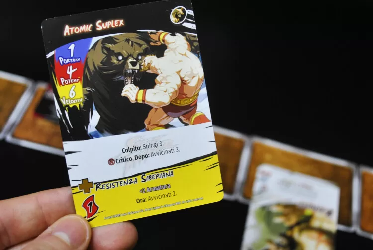 Il fatto che l’arena sia una fila di carte può piacere o meno ma sicuramente serve per tenere basso il prezzo del gioco anche se secondo me una striscia di fustella ad incastro sarebbe stata più funzionale e bella da vedere.