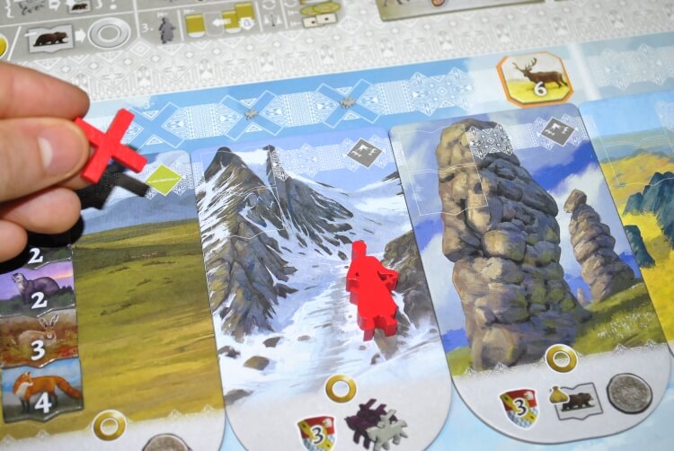 Il giocatore deve spostare la propria pedina verso destra (verso il cuore della Siberia) di 1 o 2 tessere paesaggio.