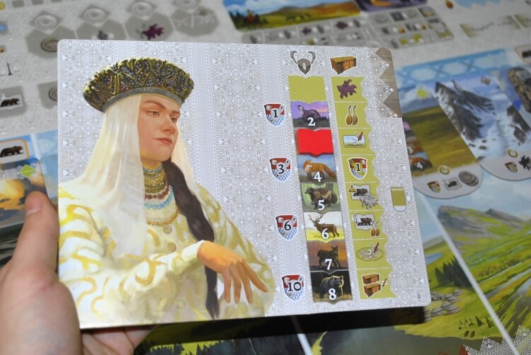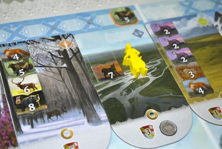 Dopo averla eseguita, il giocatore potrà fare una seconda azione (sempre oro o argento), pagando un costo extra: se l’azione è argento, basterà una pelliccia qualsiasi (oltre al costo classico) mentre se è oro servirà una pelliccia del valore indicato dalla tessera di preparazione (che cambia di partita in partita) nella regione in cui svolgeremo l’azione.