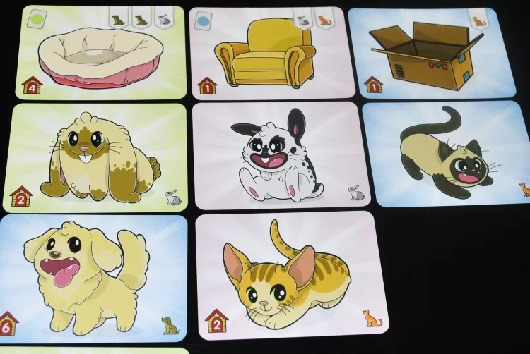 All’inizio del turno, il giocatore attivo dovrà prendere 2 carte (in qualsiasi combinazione) tra quelle disponibili scoperte al centro del tavolo, scegliendo tra gli animali tristi e le carte aiuto (cibo, coccole, cure). Le carte Luogo non possono essere prese in questo modo.