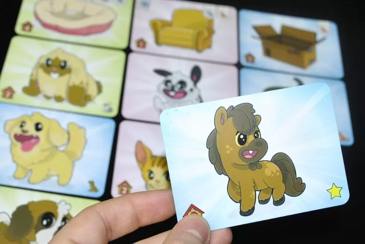 Una volta fatto, girerà la carta dal lato felice rendendola così orizzontale. Ora l’immagine dell’animale sarà gioiosa e mostrerà i punti vittoria.