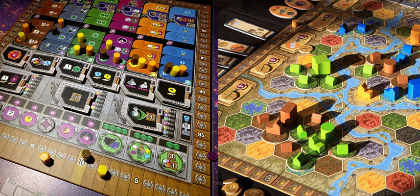 Partiamo con il chiederci perché questi due giochi entrano in competizione, quando arriva il momento di acquistarne uno dei due. Terra Mystica, titolo che troviamo spesso annoverato fra le classifiche dei i migliori giochi da tavolo, è uno dei più noti e apprezzati strategici, un german uscito nel 2021, ad opera di Jens Drögemüller e Helge Ostertag, basato sulle meccaniche di terraforming, civilizzazione e gestione economica. Il gioco è attualmente al 21° posto nelle classifica generale di BoardGameGeek.