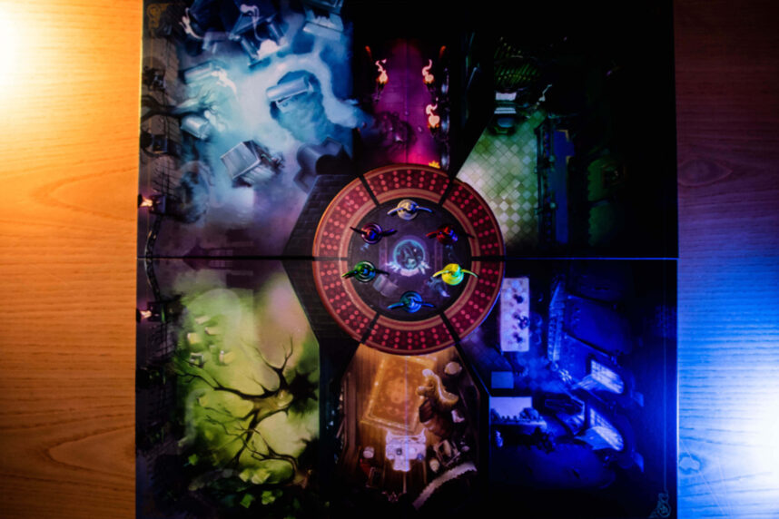 La struttura del tabellone rappresenta la famigerata Casa Infestata in cui stiamo giocando, essa è divisa in luoghi, 7 per la precisione escludendo la Hall Centrale (che di quest’ultima ne parleremo tra un momento).
