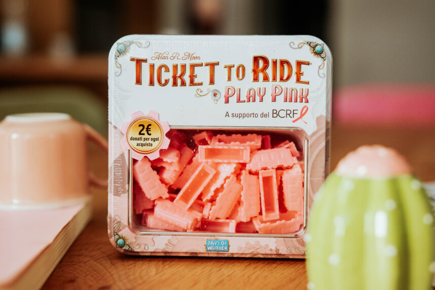 Da qui la collaborazione con la BCRF (Breast Cancer Research Foundation) che annunciano “Ticket To Ride Play Pink” ovvero un set di pedine inedite compatibili con qualsiasi versione di Ticket To Ride (gioco dalla fama internazionale) a favore della ricerca contro il tumore al seno.