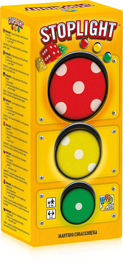 Un giocatore lancia i dadi di peluche di tre diversi colori e dimensioni. Tutti giocano contemporaneamente, cercando di colpire con la mano i dadi corretti: quello rosso, se mostra il numero più alto; quello verde, se mostra il numero più basso; quello giallo, se mostra un numero compreso tra quelli degli altri due dadi. Se non c’è neanche un dado da colpire, oppure tutti e tre i dadi devono essere colpiti, i giocatori devono urlare “Stop!”. Stoplight è un gioco semplice e rapido che stimola le capacità cognitive dei bambini e diverte anche i più grandi.