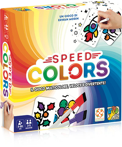 Speed Colors è il gioco di carte multicolore che mette alla prova i “piccoli pittori” da 5 anni in su. Ogni giocatore deve cercare di memorizzare i colori dell’immagine sulla carta; poi deve voltare la carta sul lato bianco e nero e colorare l’immagine il più velocemente possibile. I giocatori più rapidi e precisi ottengo punti preziosi.