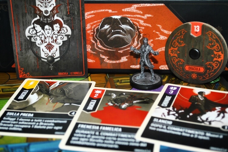 Dracula invece può curarsi togliendo vite agli altri e questo non è da sottovalutare. Per lui sarà difficile orchestrare un’imboscata ma se ci riesce saranno molti danni inflitti all’avversario, quindi pianificare bene la sua tattica sarà fondamentale, come quella di tenersi determinate carte da usare nel momento più propizio.